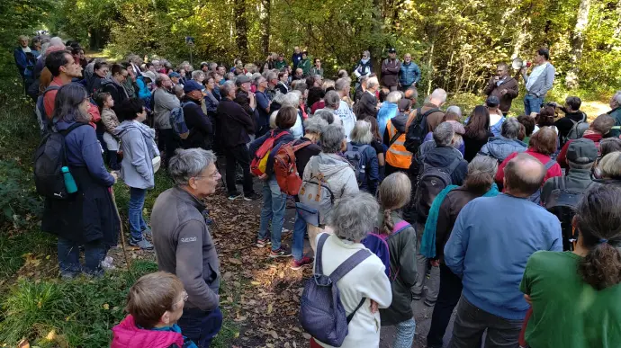 Dimanche 12 octobre, près de deux cents personnes étaient présentes en forêt domaniale de Verrières (Essonne / Hauts-de-Seine). Organisée par Les Amis du Bois de Verrières, en partenariat avec notre collectif, cette marche citoyenne commentée a réuni des personnalités reconnues du monde associatif, naturaliste et forestier, parmi lesquelles :